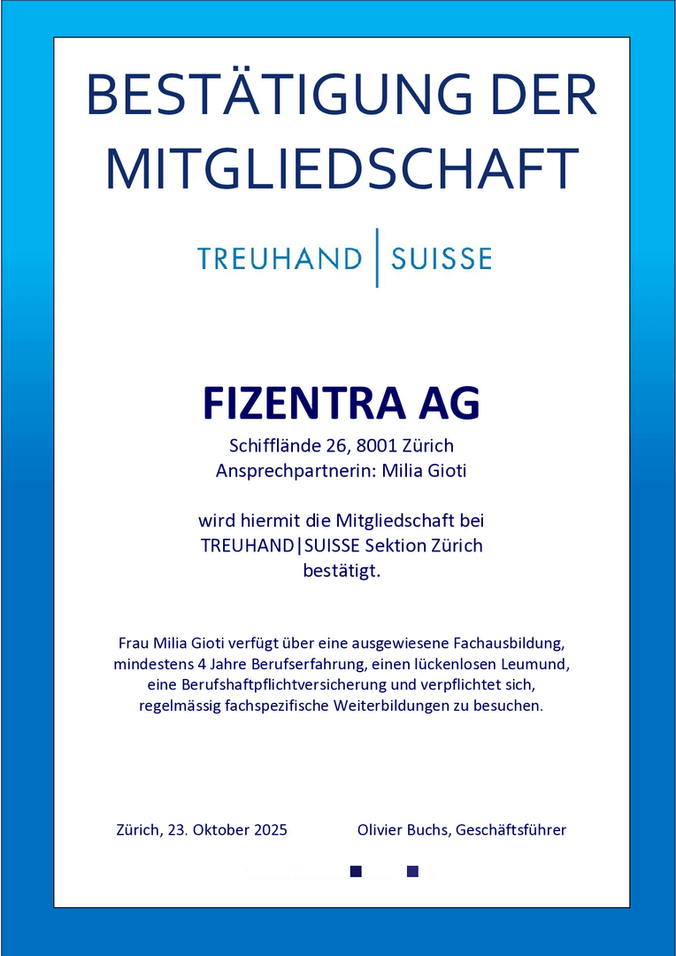 We provide you with expert support in the areas of bookkeeping, company formation, company domicile, accounting and payroll administration. With us, you can outsource your administrative tasks with confidence and concentrate fully on the growth of your company. With FIZENTRA, you can turn your visions into measurable success.